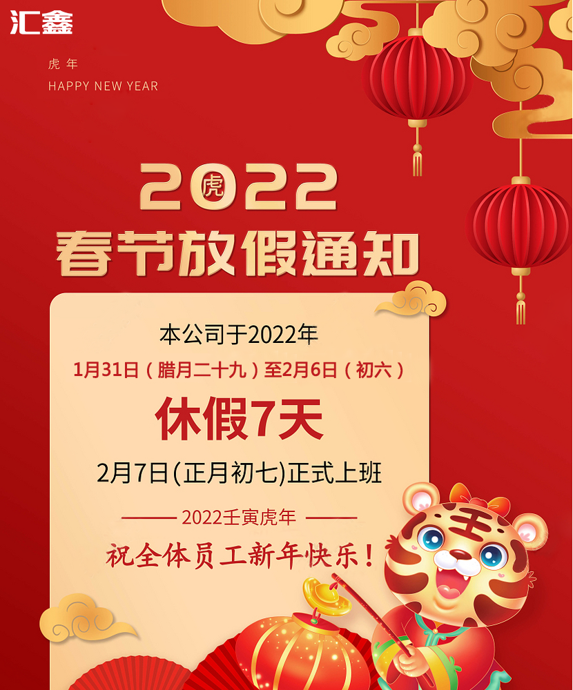 2022年春節即將來臨,根據國務院辦公廳關于2022年春節放假的規定,并結合我司實際情況,春節放假安排如下:一、放假時間: